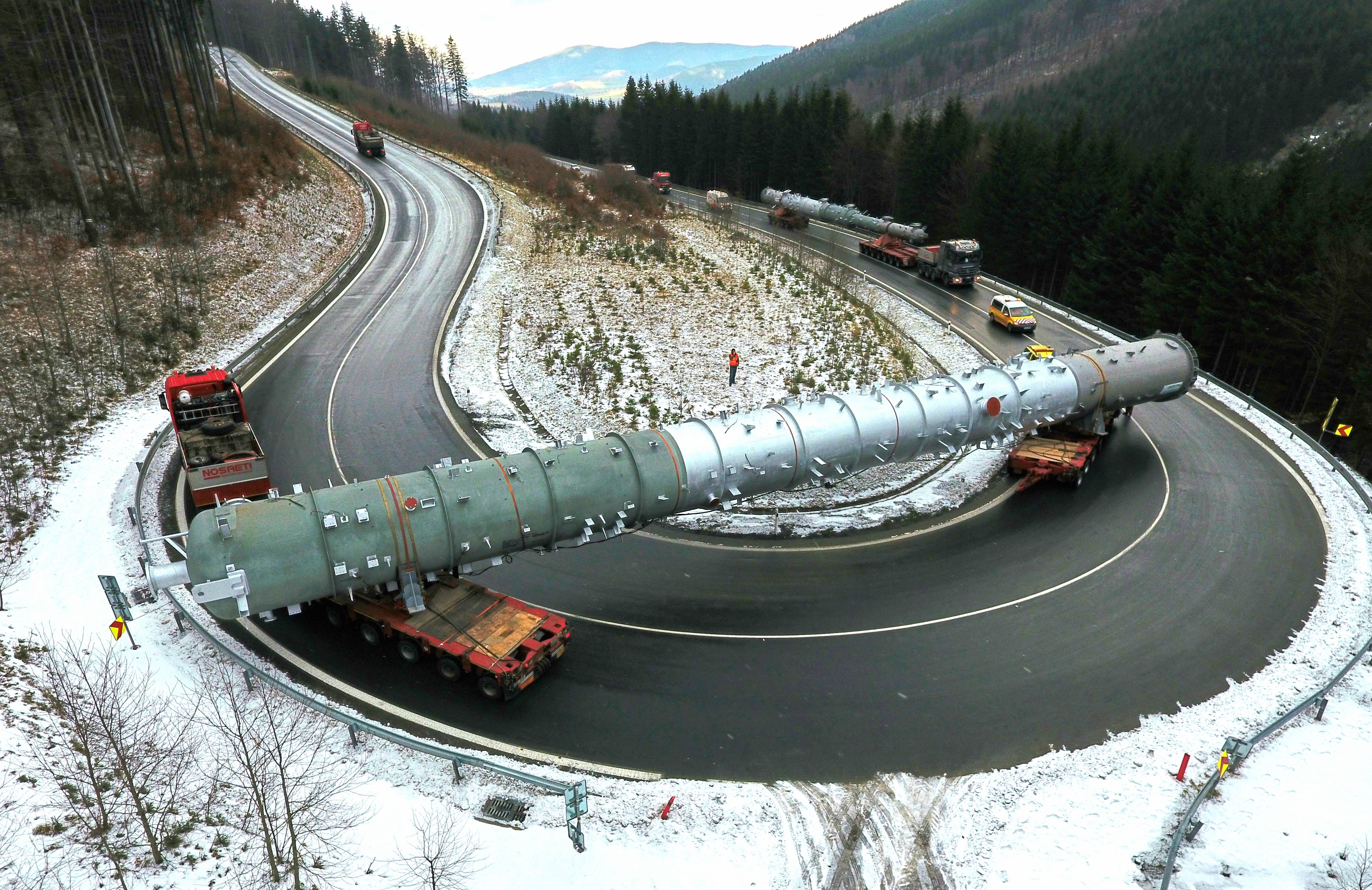 Transport kolonDne 27.11.2017 byla zahájena přeprava nadrozměrného nákladu kolon, které jsou určené pro zákazníka v Srbsku, rafinérii v Pančevu. Složitá nadrozměrná přeprava je prováděna odbornou firmou NOSRETI a.s. z naší provozovny do Bratislavy, kam dorazí v pátek, 1.12.2017. Následná přeprava proběhne pomocí remorkérů po Dunaji. K přepravě se pro Šumperský a Jesenický deník vyjádřil projektový manažer Ing. Daniel Kovář. Odkaz zde. Videozáznam transportu pro Českou televizi byl pořízen iReportéry Annou Neugebauerovou a Michalem Zajoncem. Odkaz zde. | |