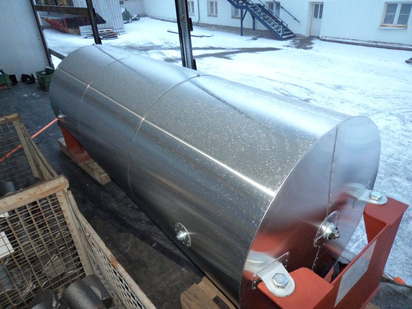 Buffer tank, 1pcs 2013, Rusko, ZA-1909Customer: BÜHLER AG, SwitzerlandCertificates: ČSN 690010, GOST 14249Material: Carbon steelWeight: 342 kgHeight: 3.0x1.0x1.0 m Fotogalerie