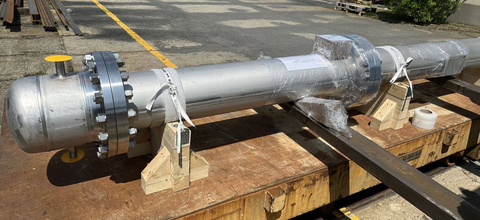 Heat Exchanger 2023, Česká Republika, ZA-2638Customer: První brněnská strojírna a.s., Czech RepublicCertificates: EN 13445Material: 1.4462Weight: 850 kgHeight: 4.69 x 0.64 x 0.75 m