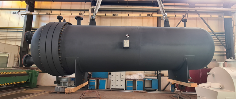 Heat Exchanger 2024, Česká Republika, ZA-2678-1Customer: UNIS a.s., Czech RepublicCertificates: ČSN EN 13445, PED 2014/68/EUMaterial: P265GH, SA-765 Gr.IIWeight: 19.000 kgHeight: 5.76 x 1.61 x 2.16 m