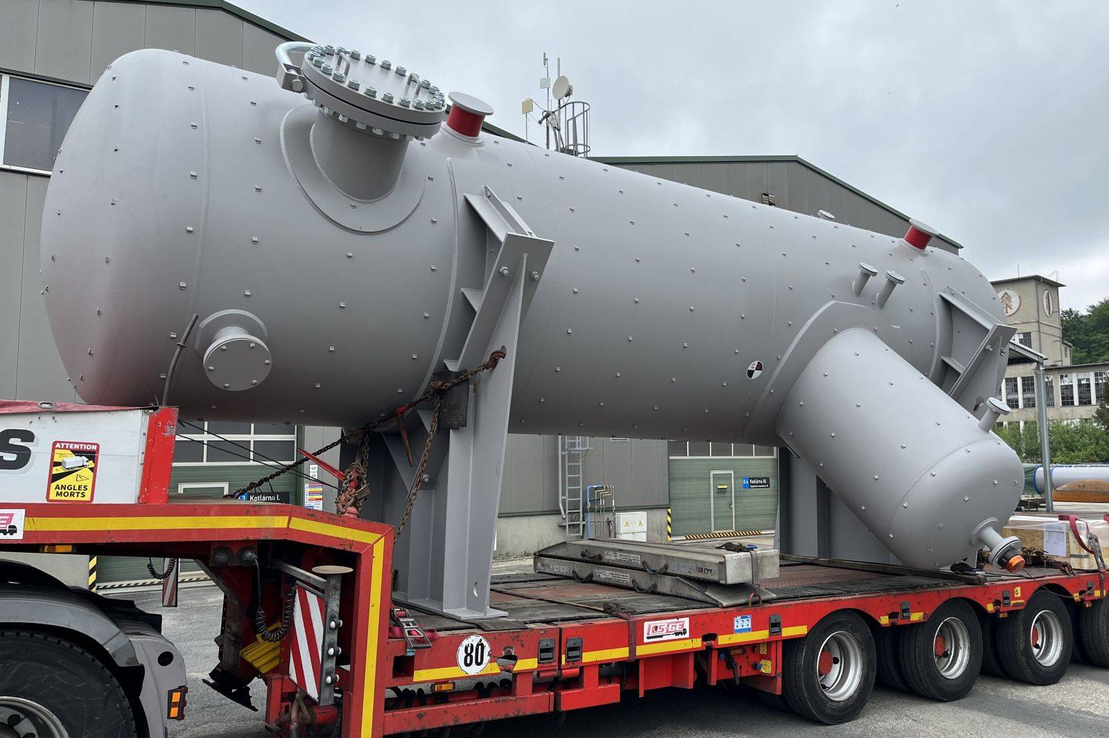 Separator 2023, Bělorusko, ZA-2632Customer: JSC Mozyr Oil Refinery, Republic of BelarusCertificates: ASME CODE., Sec. VIII., Div. 1, Ed. 2021Material: SA 516, Gr. 70Weight: 15.000 kgHeight: 8.29 x 3.95 x 3.50 m