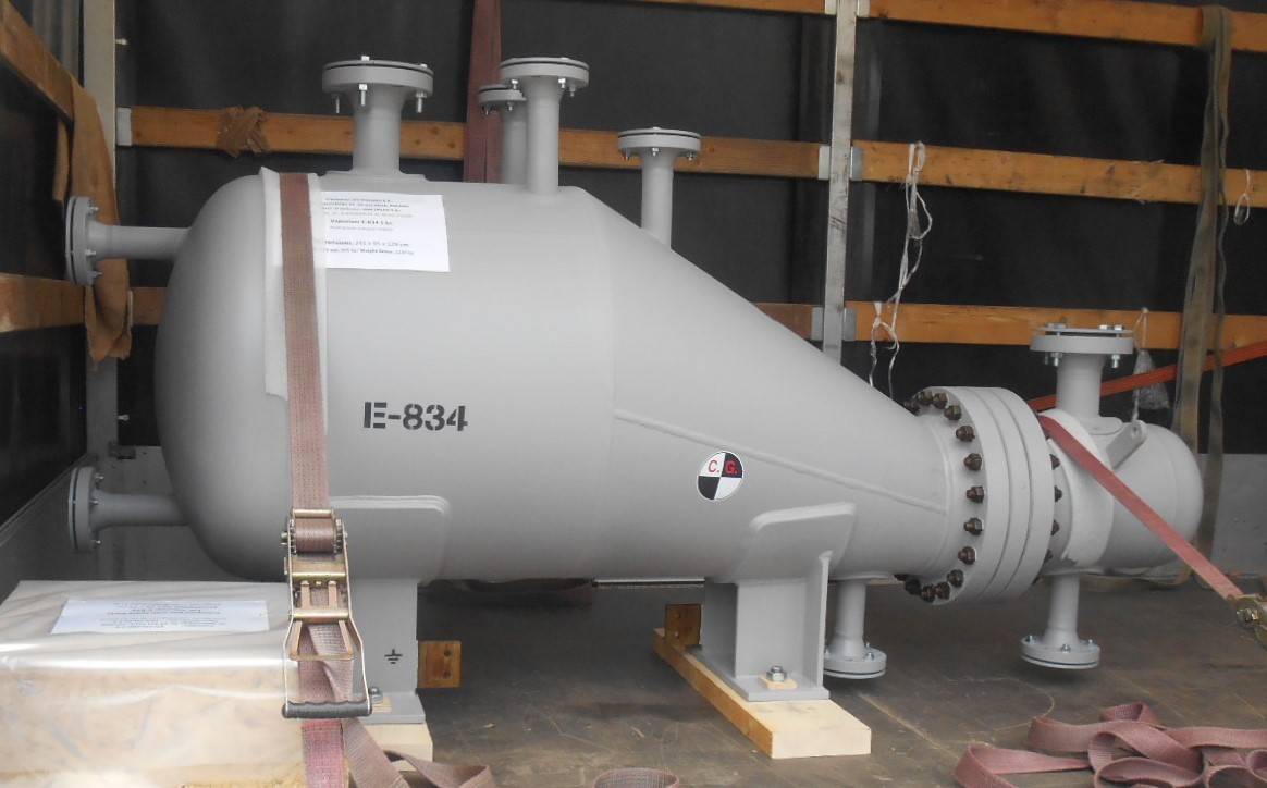 Vaporizer 2022, Polsko, ZA-2604Customer: KTI Poland S.A.Certificates: ASME VIII., Div. 1, PED 2014/68/EUMaterial: Sa516 Gr.70Weight: 1.200 kgHeight: 2.41 x 0.95 x 1.29 m