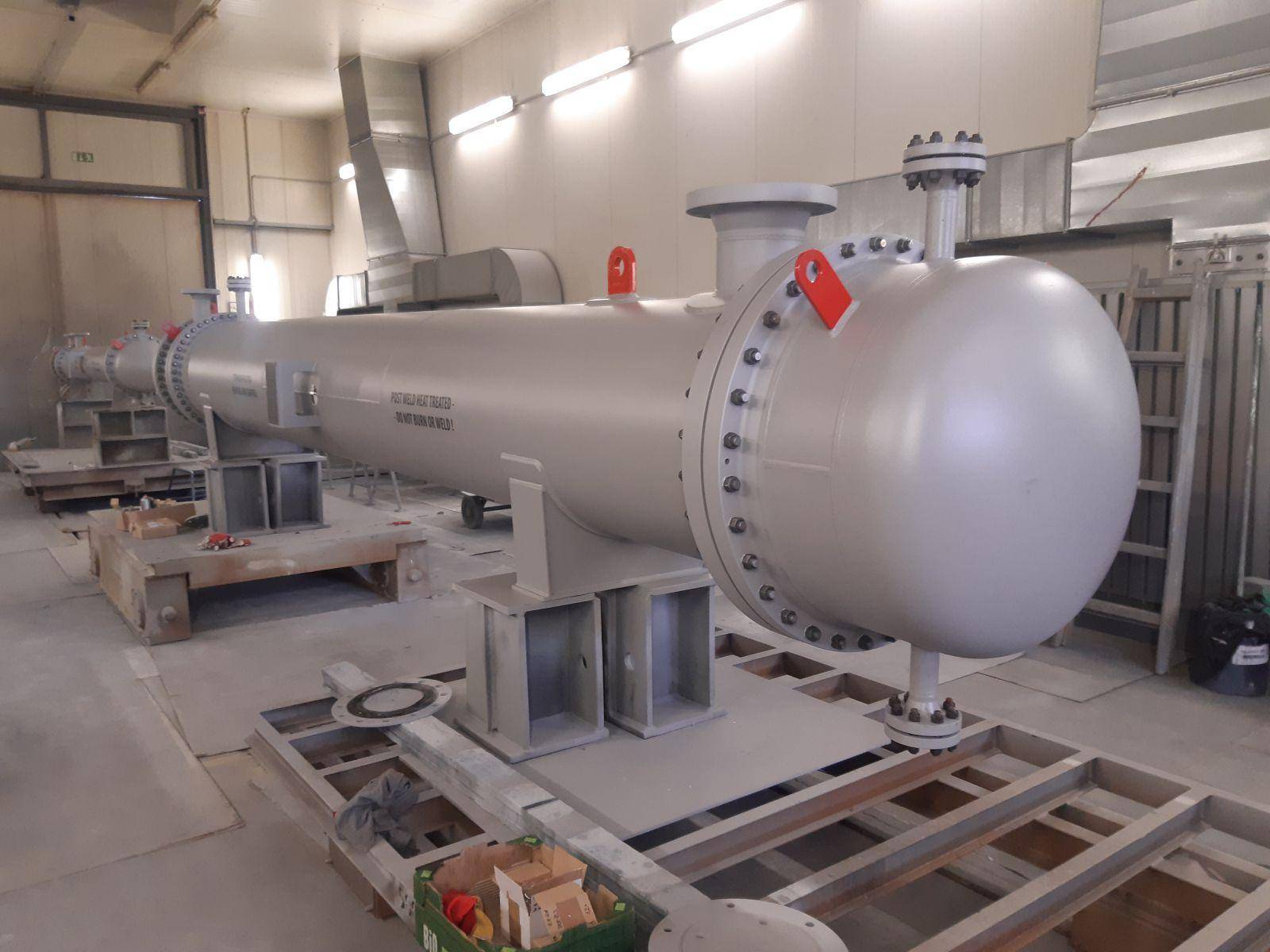 Preheater 2022, Nizozemsko, ZA-2554Customer: CB&I NederlandCertificates: ASME VIII., Div.1, GOST-RMaterial: SA516 Gr.60, Doplex 1.4462Weight: 6.200 kgHeight: 7.10 x 0.96 x 5.40 m