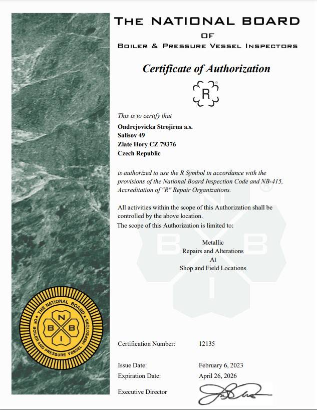 ASME CERTIFICATIONToday's news from our company is very positive and concers the fulfillment of one of the most important goals for this year. ASME certification is extremely important to us, because it is a true indication of the entire system and is a key requirement in tenders for many customers. According to the audit conclusions, our company can not only be proud of the very high level of the system, but also of the high level of expertise of our employees. The German auditor was also enthusiastic about the cleanliness of our production premises. The result of the certification is the extension of our ASME "U" and "U2" certificate for another 3 years. At the same time, we are newly certified to repair metal equipment in accordance with the ASME "R" standard. Below is our new certificate in just this area.