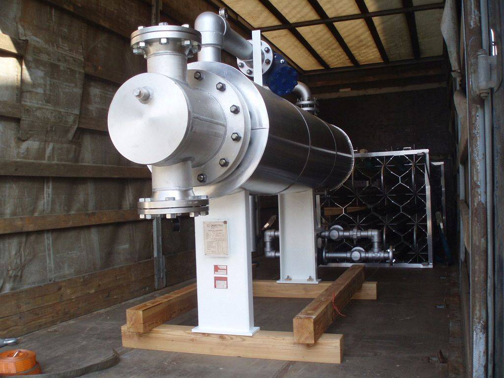VaporizerCustomer: Thermax Inc. USACertificates: ASME Code Sect. VII-DIV 1, TEMA R, GOST R, PED 97/23/EC - MODUL GMaterial: Stainless steel, TP 304Weight: 700 kgHeight: 3,3x1,7x1,2 m