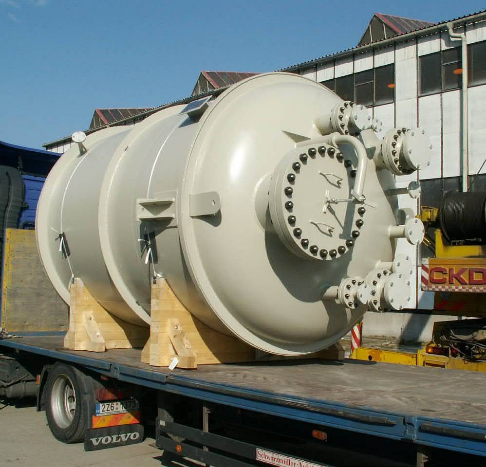 TanksCustomer: DUPONT Asturias SpainCertificates: ASME Code Sect. VIII-DIV 1Material: Carbon steelWeight: 6,375 kgHeight: 5,3x2,9x2,9 m