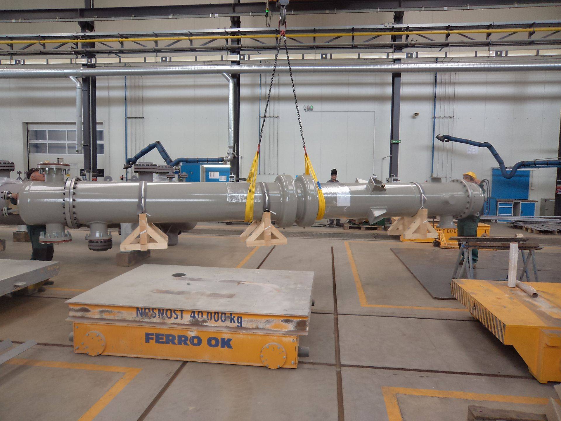 Heat Exchanger 1pcCustomer: DUPONT Asturias SpainCertificates: ASME CODE VIII,Div.1,PED 97/23/EC,TEMA RMaterial: Carbon steelWeight: 3,230 kgHeight: 7.30x0.8x1.0 m